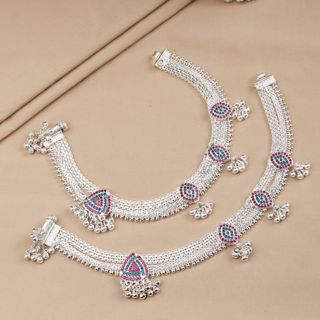Adorn your feet with Rubina Silver Anklets, designed with intricate patterns and elegant detailing. Blending tradition with modern grace, these anklets are perfect for daily wear or special occasions, adding timeless charm to your look.